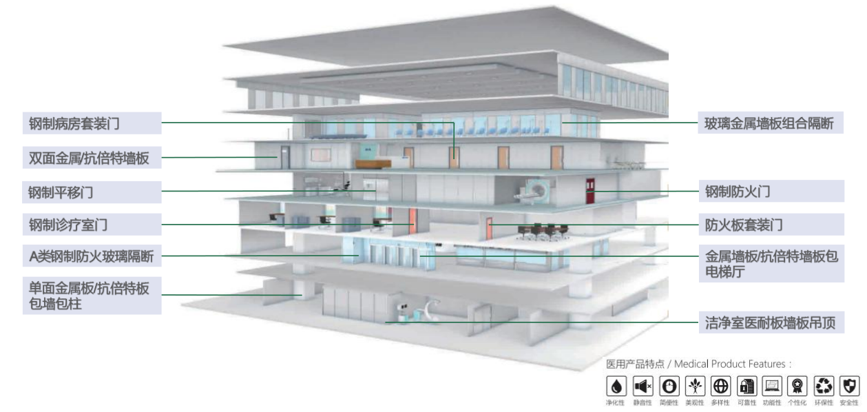防火空間全鋼防火商業空間玻璃隔斷醫療空間金屬墻板
